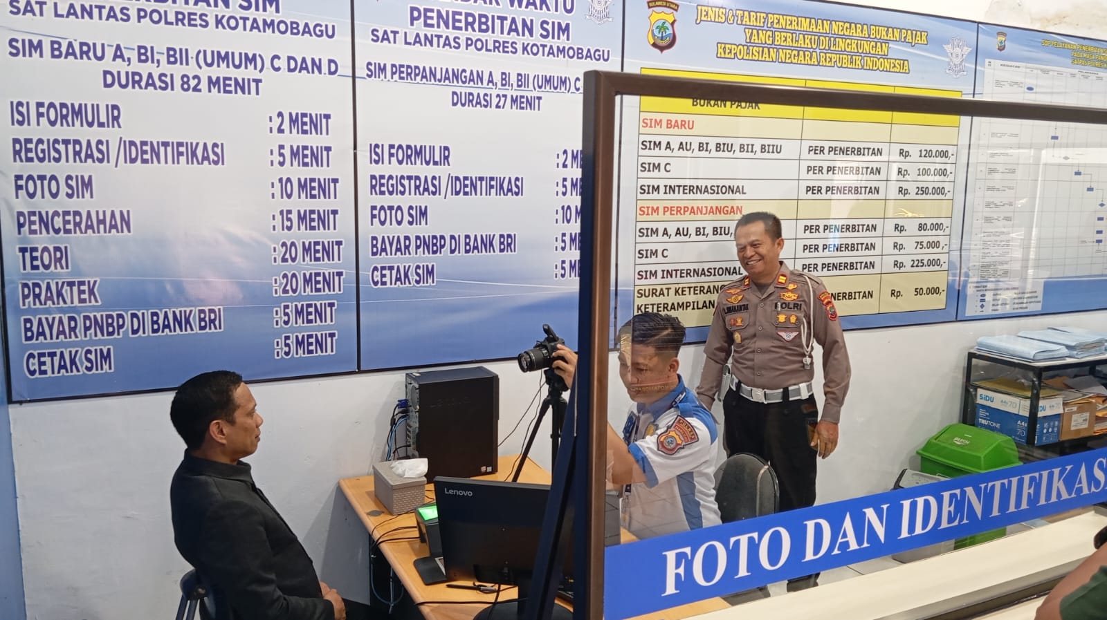 SULAWESI.NEWS, KOTAMOBAGU – Kapolres Kotamobagu, AKBP Irwanto S.I.K., M.H., menunjukkan semangat soliditas dan sinergitas antar unsur Forum Komunikasi Pimpinan Daerah (Forkopimda) dengan mendampingi Wali Kota Kotamobagu, Wenny Gaib, S.P.M., serta Dandim 1303/BM Letkol Inf Fahmil Harris, S.I.P. dalam proses pengurusan Surat Izin Mengemudi (SIM) di Markas Satuan Lalu Lintas (Satlantas) Polres Kotamobagu, Selasa (28/10/2025).