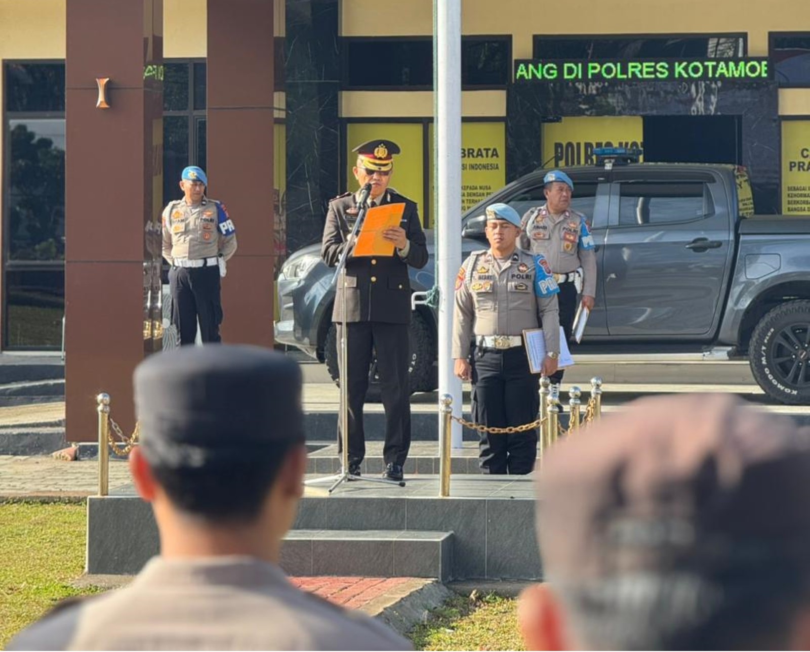 Upacara dipimpin oleh Wakapolres Kotamobagu, Kompol Romel Pontoh, S.IP., M.AP., yang mewakili Kapolres Kotamobagu AKBP Irwanto, S.I.K., M.H. Kegiatan ini diikuti oleh jajaran pejabat utama, para perwira staf, serta seluruh personel Polres Kotamobagu.