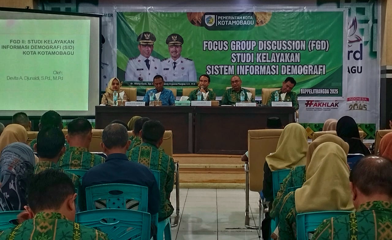 SULAWESI.NEWS, KOTAMOBAGU – Pemerintah Kota Kotamobagu terus berupaya meningkatkan kualitas perencanaan pembangunan dengan memperkuat basis data kependudukan. Salah satu langkah konkret yang dilakukan yakni menggelar Focus Group Discussion (FGD) terkait studi kelayakan sistem informasi demografi, yang berlangsung di Aula Kantor Bapelitbangda Kota Kotamobagu, Kamis (11/12/2025).