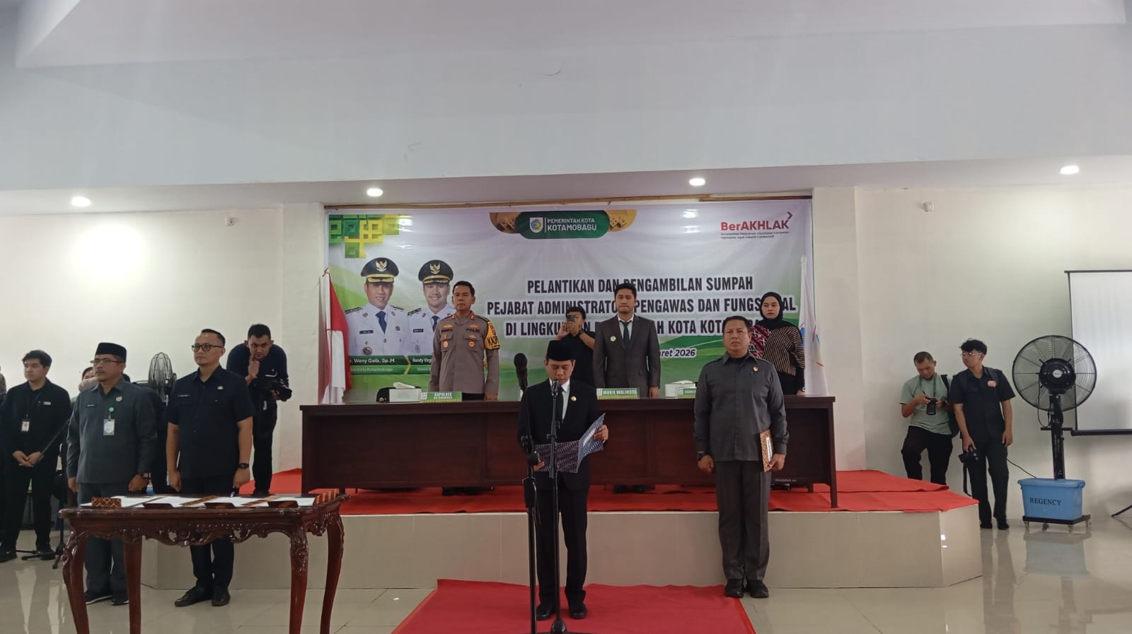 Tercatat sebanyak 174 pejabat yang terdiri dari administrator, pengawas, dan pejabat fungsional resmi dilantik oleh wali kota dalam prosesi yang berlangsung di Aula Dinas Perpustakaan Kotamobagu, Jumat (13/3/2026). Kegiatan tersebut turut dihadiri pimpinan Organisasi Perangkat Daerah (OPD), para pejabat struktural, serta sejumlah tamu undangan.