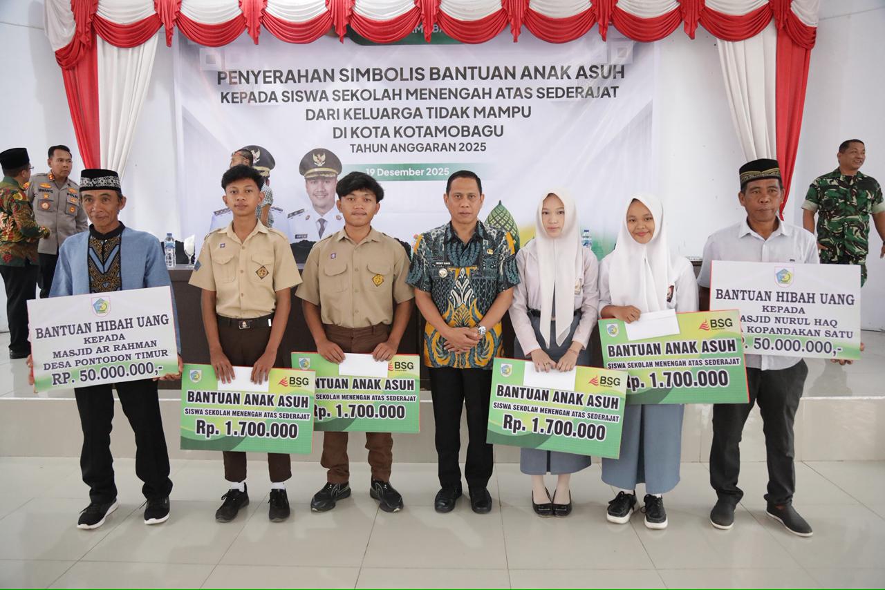 SULAWESI.NEWS, KOTAMOBAGU – Pemerintah Kota Kotamobagu kembali menunjukkan komitmennya dalam mendukung sektor pendidikan dan keagamaan. Wali Kota Kotamobagu, dr. Weny Gaib, Sp.M, menyerahkan bantuan Anak Asuh kepada siswa Sekolah Menengah Atas dan sederajat, sekaligus menyalurkan bantuan hibah uang bagi rumah ibadah, Jumat (19/12/2025).