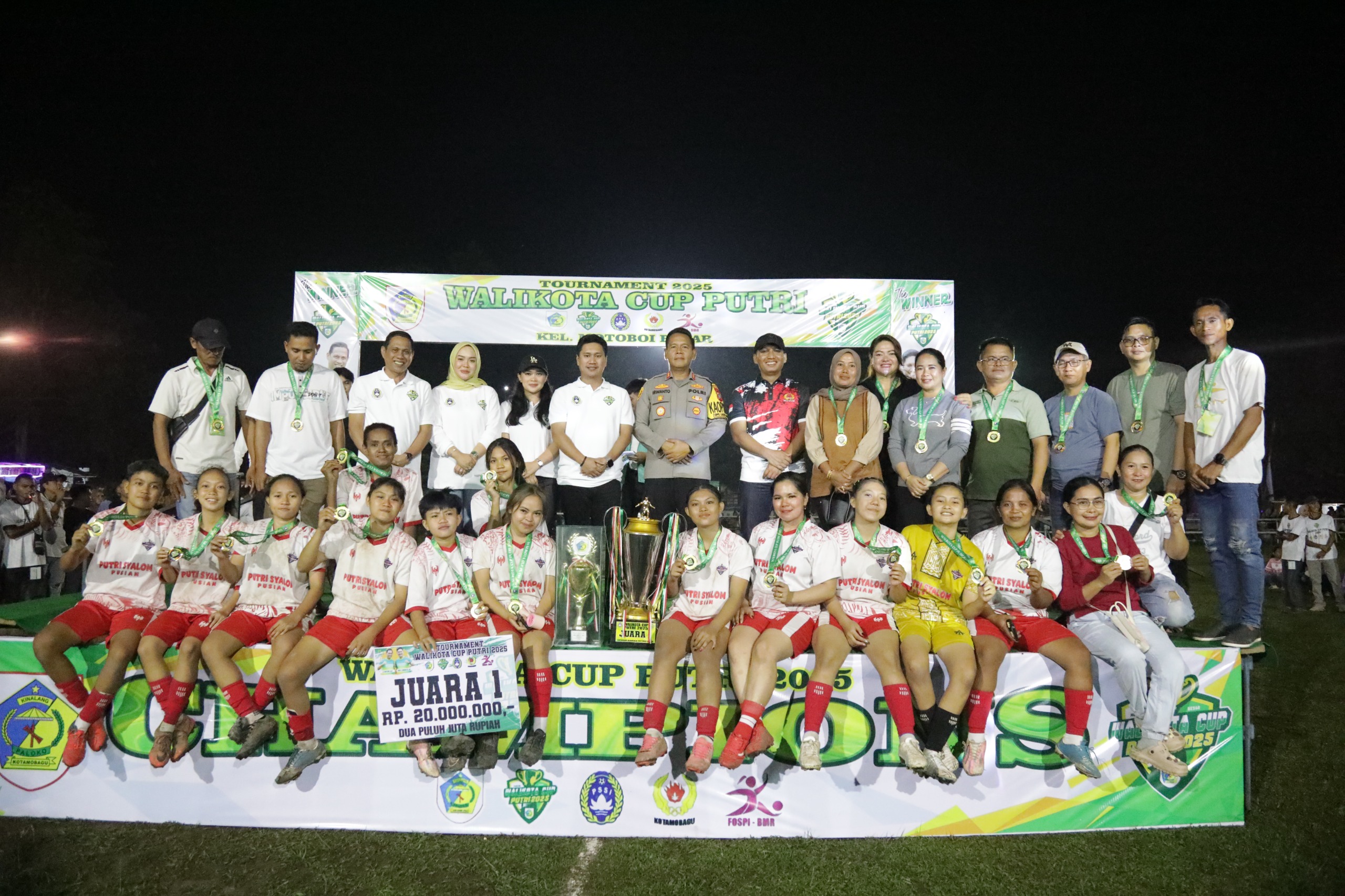Penutupan Turnamen Sepak Bola Wali Kota Cup Putri 2025 turut dihadiri Wakil Wali Kota Kotamobagu Rendy Virgiawan Mangkat, S.H., M.H., Dandim 1303/Bolaang Mongondow Letkol Inf. Manashe Lomo, S.H., M.I.P., Kapolres Kotamobagu AKBP Irwanto, S.I.K., M.H., sejumlah anggota DPRD Kota Kotamobagu dan DPRD Bolaang Mongondow, Ketua TP-PKK Kota Kotamobagu Ny. Rindah Gaib Mokoginta, S.E., M.Ec.Dev., Wakil Ketua TP-PKK Ny. Resty A. Mangkat Somba, S.Sos., M.H., Ketua Askot PSSI Kotamobagu Michael Solat Bibisa, Kepala Kantor Kementerian Agama Kotamobagu Jamaluddin Lamato, S.Pd.I., M.Pd., Kepala Rutan Kelas IIB Kotamobagu Aris Yulianta, S.H., M.H., Asisten I Setda Kotamobagu Nasli Paputungan, S.E., jajaran OPD, camat, lurah dan sangadi, Lurah Motoboi Besar Tendi Ponubu, S.KM., serta ribuan masyarakat yang memadati lokasi pertandingan.(*)