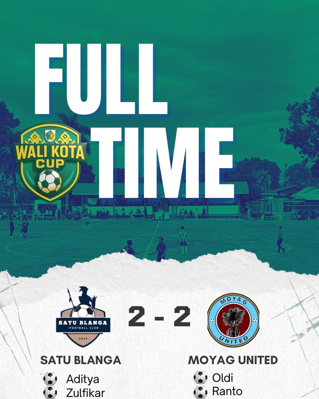 Sejak peluit awal dibunyikan, Moyag United tampil agresif dan langsung menekan pertahanan lawan. Hasilnya, dua gol cepat tercipta di babak pertama yang membuat tim asuhan Tri Ismail unggul sementara 2-0. Namun, semangat pantang menyerah ditunjukkan skuad Satu Blanga FC yang berhasil bangkit di paruh kedua pertandingan dan menyamakan kedudukan menjadi 2-2 hingga peluit panjang dibunyikan.